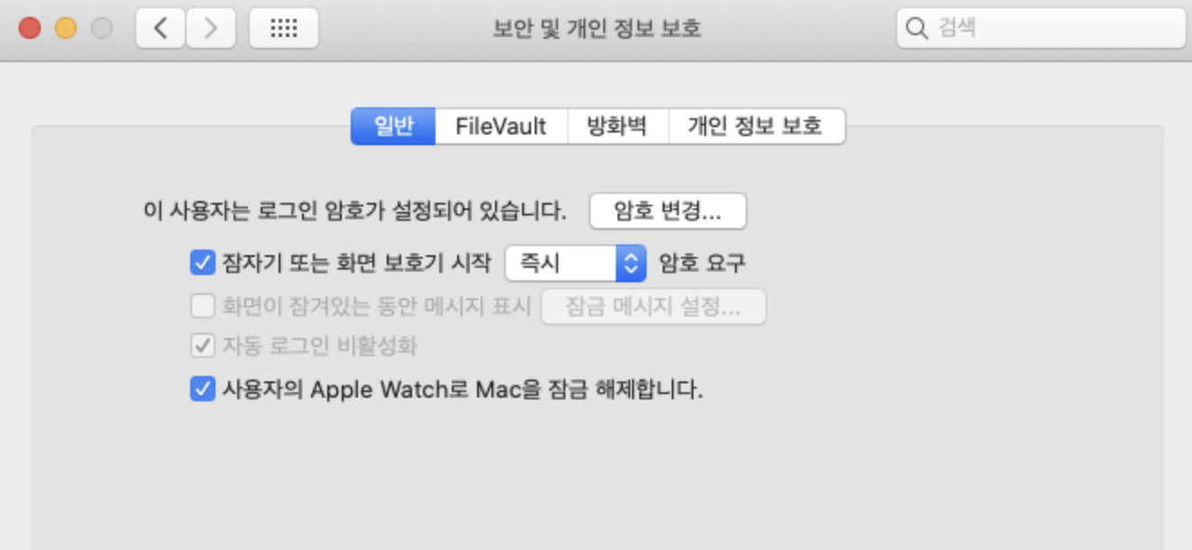 사진 속 옵션을 활성화시켜두고 애플워치를 착용하고 있다면 맥의 화면이 잠기더라도 클릭 한 번으로 별도의 보안 절차 없이 맥을 잠금해제할 수 있다. 애플워치로 잠금을 해제할 경우, 워치에는 맥을 잠금해제했다는 메세지가 팝업 된다. 또한 맥 운영체제 특성상, 윈도우에 비해 비밀번호를 쳐야 하는 상황이 많다. 예를 들면 특정 설정 창에 접속하거나, 프로그램을 설치할 때 비밀번호를 요구받는데, 이때 맥북이라면 터치 ID로 비밀번호를 대체할 수 있다. 하지만 데스크탑 맥의 경우 터치아이디가 없기 때문에 비밀번호를 매번 쳐줘야 한다. 하지만 애플워치를 착용하고 있다면 애플워치의 전원 버튼을 두 번 누르면 비밀번호 타이핑을 대체할 수 있다.