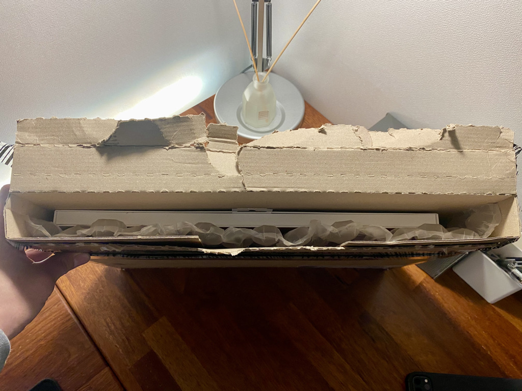 가죽 슬리브는 애플스토어 가로수길에서 구매하려 했지만 코로나 때문에 예약없이는 방문이 안된다는 것을 알고 공식 홈페이지에서 구매했다. 배송은 이틀 만에 왔고 여느 애플 제품과 마찬가지로 잘 포장된 상자에 배송되었다. 상자 안쪽은 에어캡으로 잘 채워져 있었다.