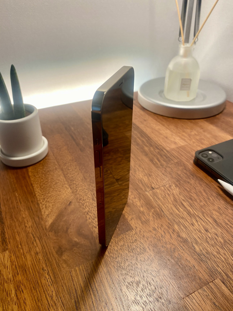이번 아이폰12 프로 맥스의 외형은 대만족이다. 깻잎통 디자인, 가장 큰 화면, 스테인리스 테두리, 스테인리스 재질을 통한 완전한 금색 표현 등 디자인에 있어서는 역대급임이 틀림없다.
