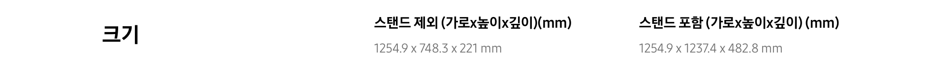 사이즈가 궁금한 독자를 위해 상세 수치를 남긴다. 스탠드의 높이가 생각보다 높아서 낮은 TV장을 사용할 때 보다 높고, 소파에 앉아서 시청하기에 딱 좋다. 보편적인 거실 인테리어가 싫고 좀 더 모던한 느낌을 주고 싶다면 세리프 TV를 강력 추천한다.