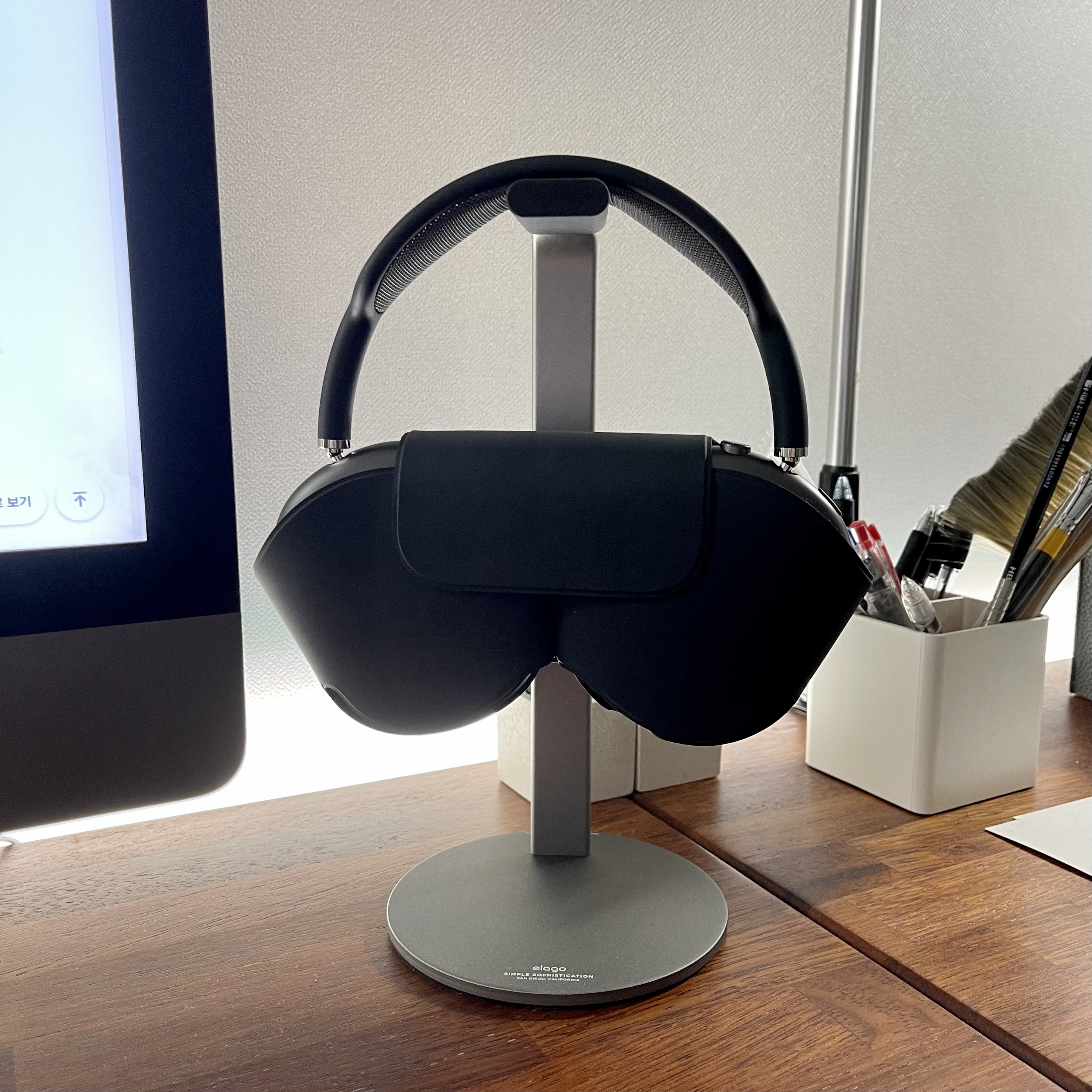 에어팟 맥스를 거치해보면 거치대가 애플 제품이라고 해도 믿을 만큼 잘 어울리는 모습을 보여준다.
