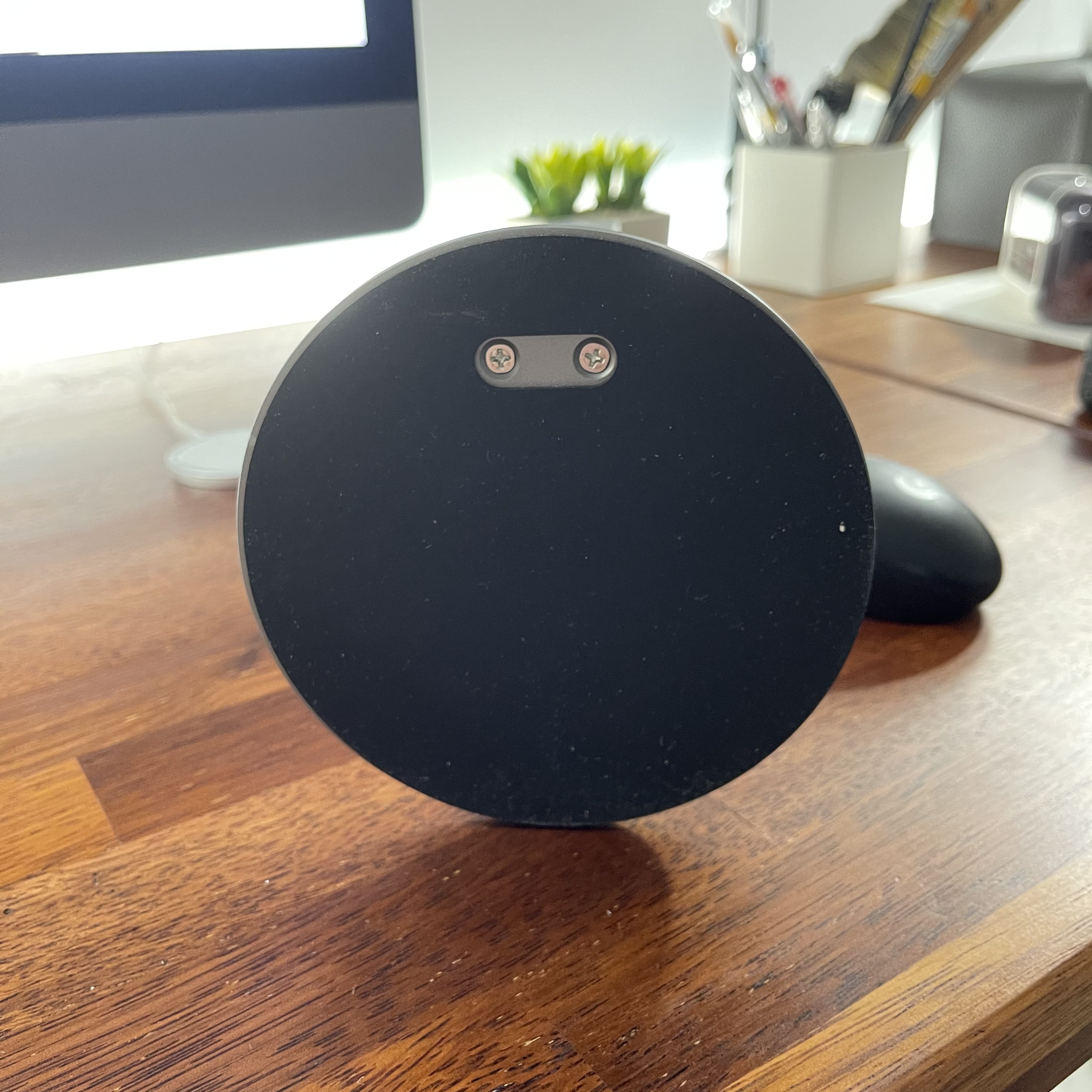 색깔은 샴페인 골드, 실버, 다크그레이 있는데 책상 위의 제품이 모두 스페이스 그레이 색깔이라 다크 그레이로 구매했다. 높이는 26.5cm, 아래쪽의 받침 부분은 지름 13cm의 원형으로 구성되어 있다.