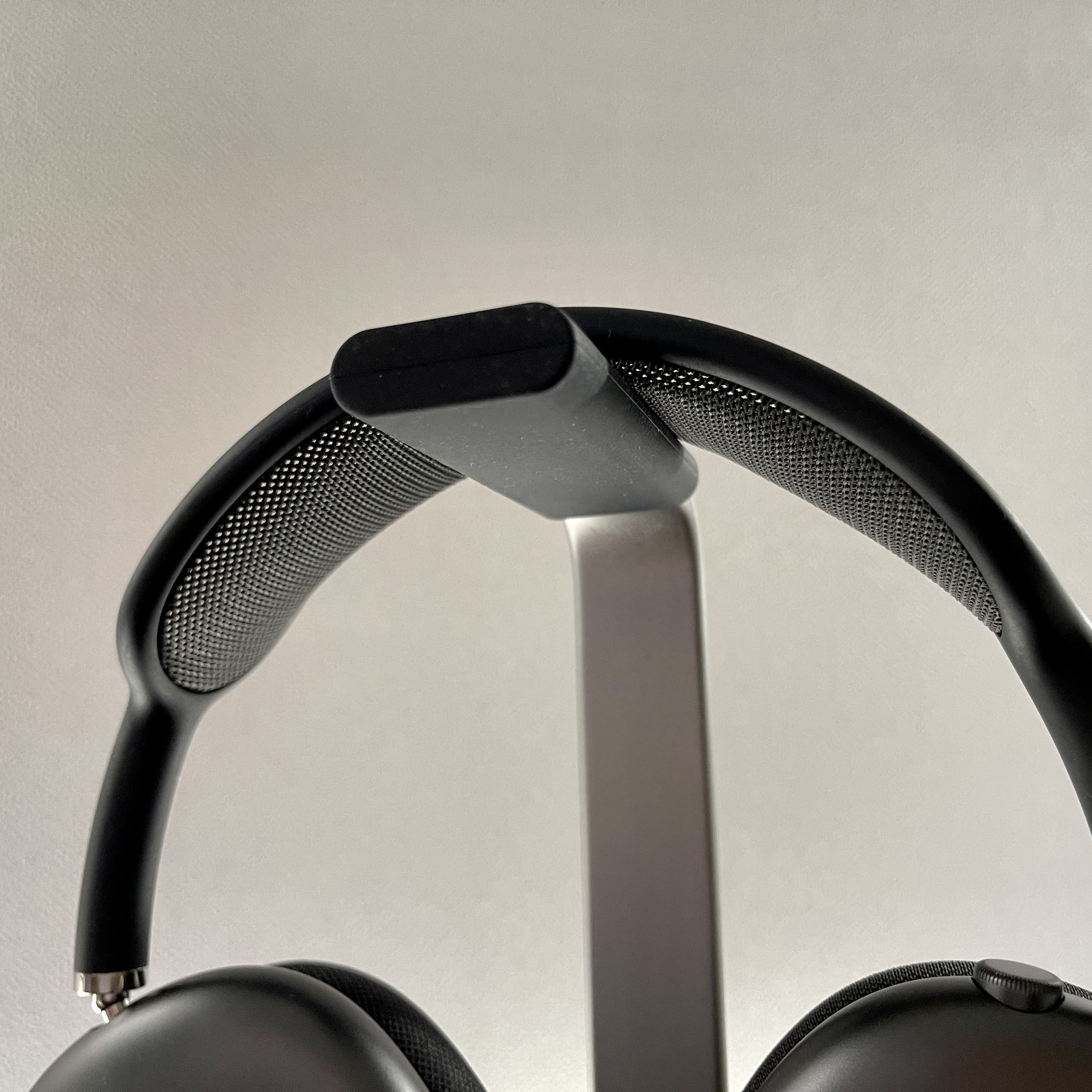 한 가지 걱정되는 부분은 한 곳에 헤드폰의 모든 무게가 실리기 때문에 헤드셋이 상하진 않을까 하는 것이다. 이 부분이 걱정된다면 사진과 같이 거는 형식이 아닌 헤드폰을 씌우는 형태의 거치대를 구매하길 추천한다. 에어팟 맥스의 경우 헤어밴드의 내부 재질이 스테인리스 스틸로 제작되어 헤어밴드가 휘거나 하는 걱정은 없지만, 메시 부분이 영구적으로 눌릴까 염려된다.