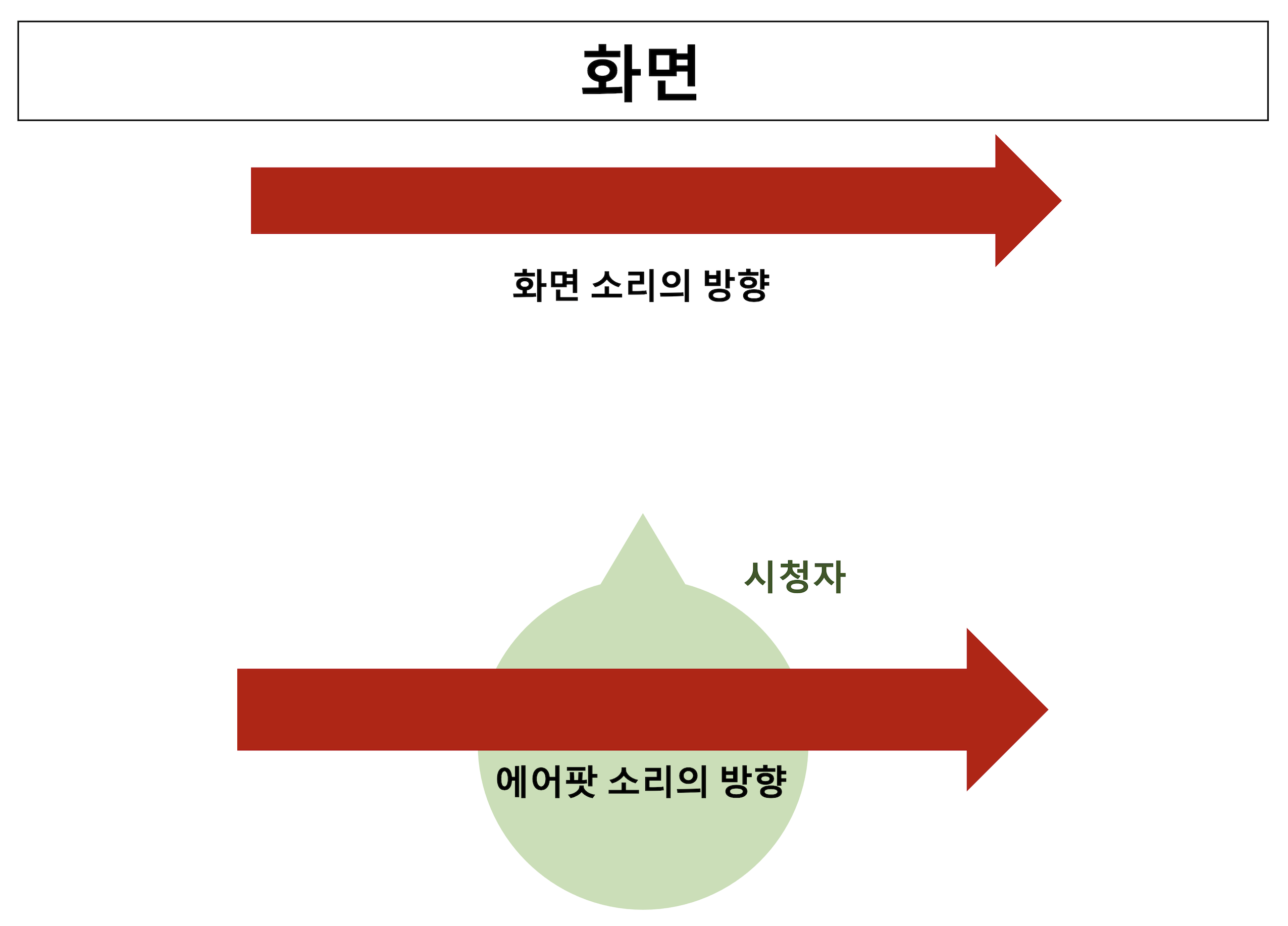 에어팟을 착용하고 콘텐츠가 재생 중인 화면을 똑바로 본다고 하자, 그러면 문제없이 화면에서 나오는 소리의 방향과 착용 중인 에어팟 소리의 방향이 일치할 것이다.