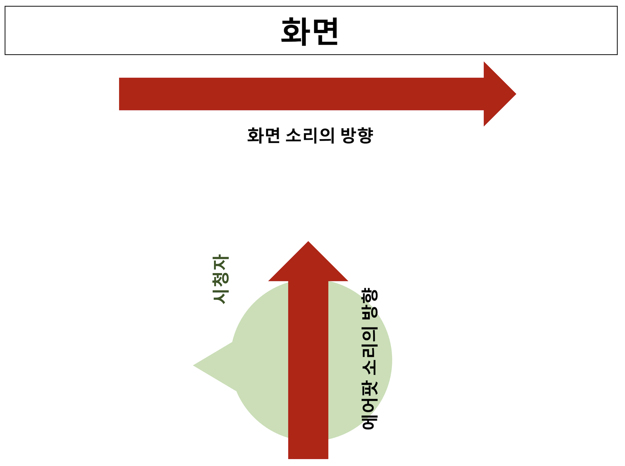하지만 시청자가 고개를 왼쪽으로 틀면 화면에서 표현되는 소리의 방향과 실제 내가 듣고 있는 소리의 방향이 달라지게 된다. 이 경우 화면의 총알은 왼쪽에서 오른쪽으로 날아가지만 실제 출력되는 소리는 뒤쪽에서 앞쪽으로 날아가게 된다.