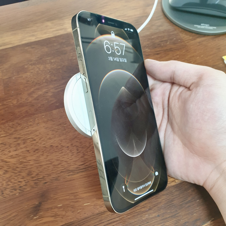 일반적인 무선충전기를 생각해보자, 충전을 하다가 휴대폰을 사용하고 싶으면 그냥 들어 올려서 사용하면 된다. 하지만 맥세이프 충전기는 자력 때문에 휴대폰에 딸려오게 된다. 그래서 항상 아이폰을 들어 올릴 땐 손가락으로 충전기를 떼어내면서 들어 올린다.