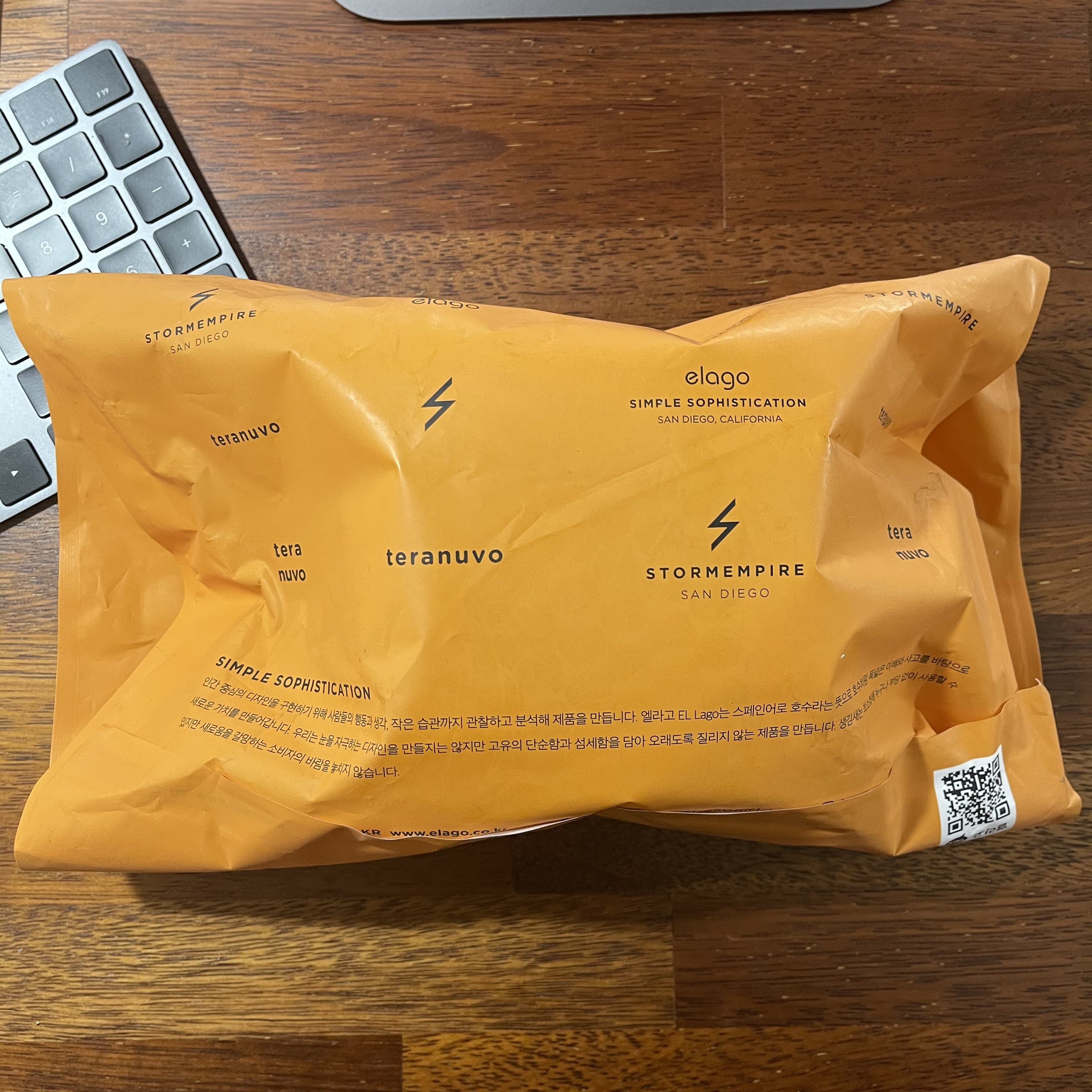 엘라고 마크가 프린팅 된 비닐에 포장되어 배송이 왔다. 본 상자는 에어캡에 잘 포장되어 있었다.