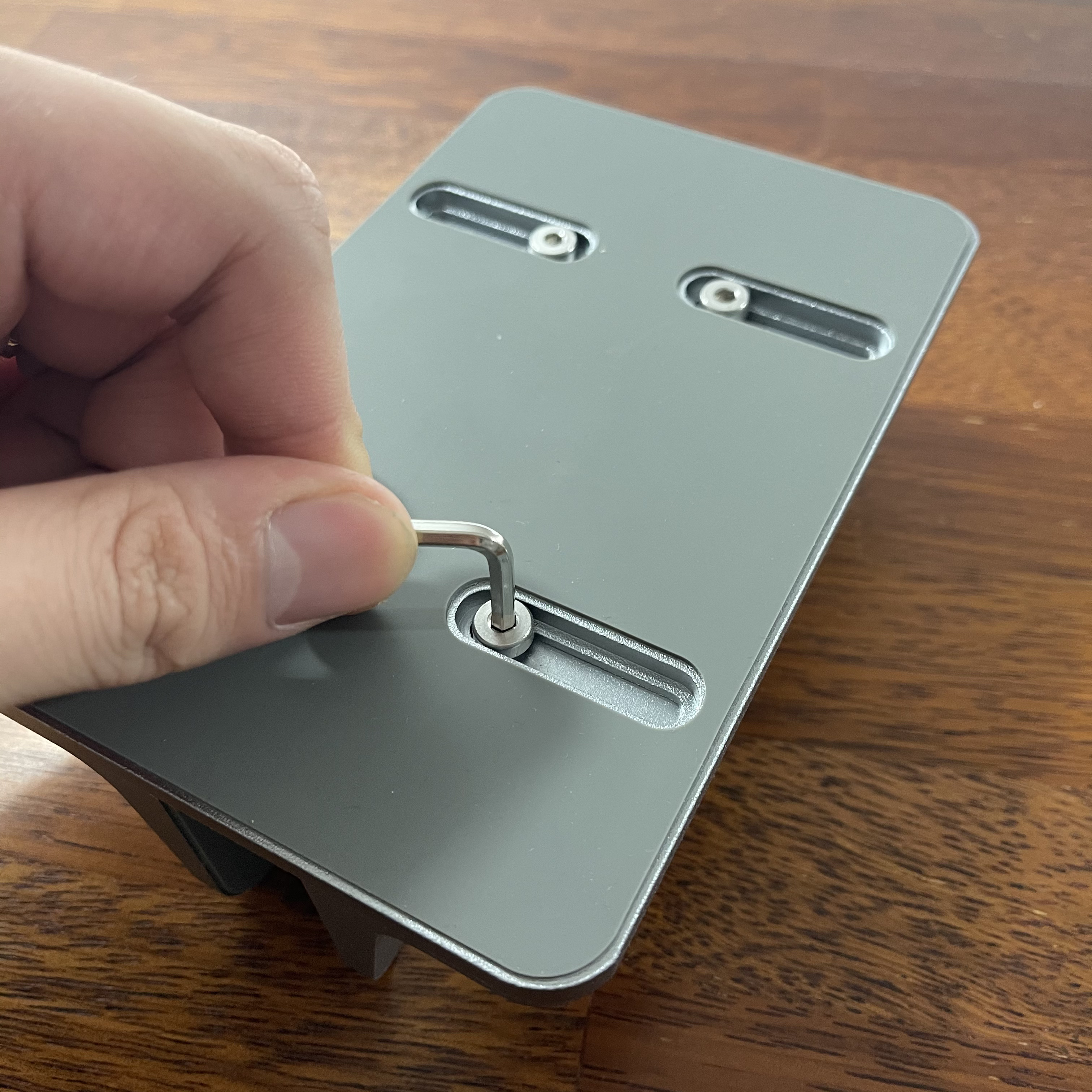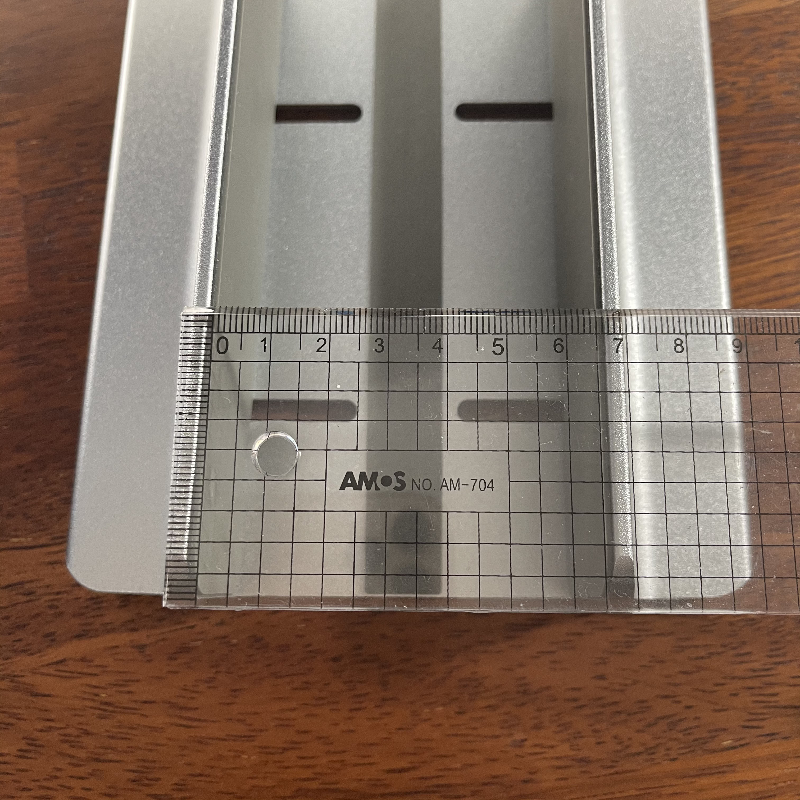 최소 넓이는 1.4cm, 최대 넓이는 6.5cm이다. 넓이를 좁게 하면 움직이는 부분 아래의 하판이 노출되는데 개인적으로 깔끔하지 않다고 생각한다. 넓이 조절을 할 때는 앞쪽 조절부는 하판과 수평이 되도록 맞추고 뒤쪽 조절부를 통해 넓이를 조절하는 것을 추천한다. 아울러 너비를 너무 좁게 만들어버리면 고무의 마찰력으로 인해 맥북을 거치대에서 분리할 때 거치대가 딸려오니 어느 정도 여유를 두는 것이 좋다.