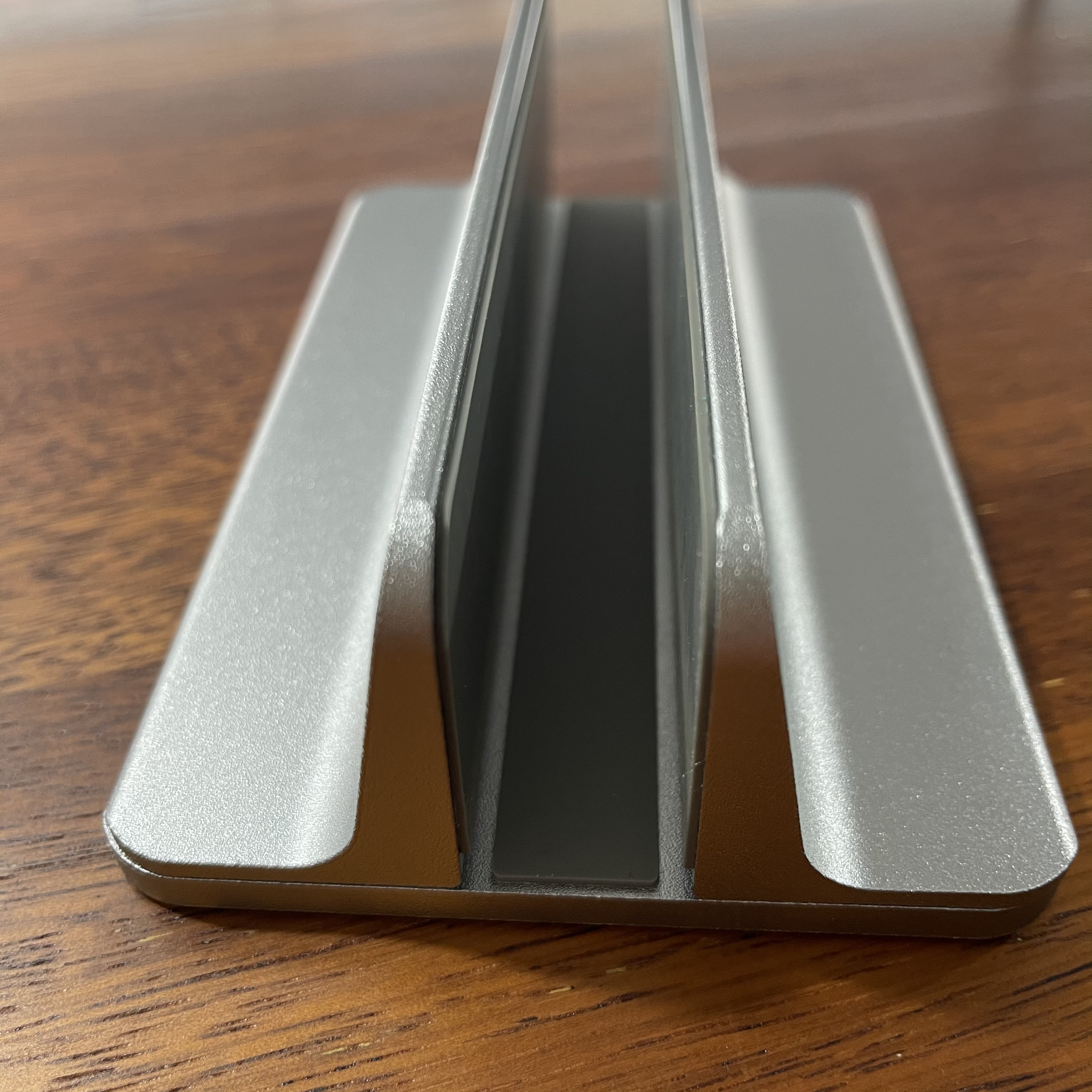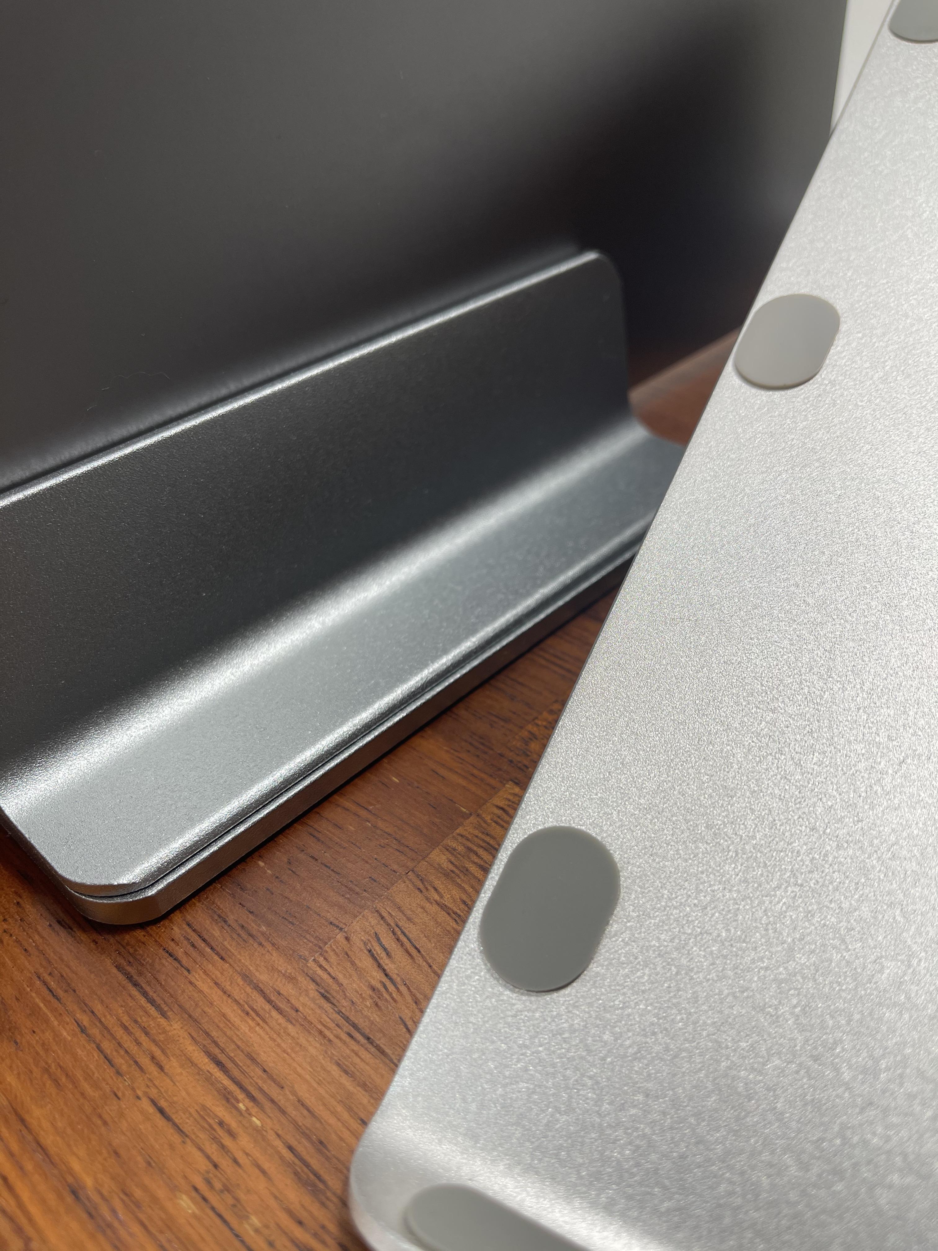 클램쉘 모드를 위한 거치대인 만큼 깔끔하다. 스페이스 그레이, 블랙 색상과 잘 어울리는 모습을 보여준다. 사실 거치대의 디자인 자체보다는 거치대를 사용하여 맥북을 모니터 밑에 눕혀서 혹은 세워서, 옆에 수평 혹은 수직으로, 모니터 뒤에 둘지가 중요하다. 필자는 책상 두 개를 ㄱ자로 두고 쓰고 있어 책상 길이가 길어 맥북을 모니터 옆에 수평으로 두었다. 데스크 셋업의 방식과 팁은 추후에 별도의 글에서 다룰 수 있도록 하겠다.