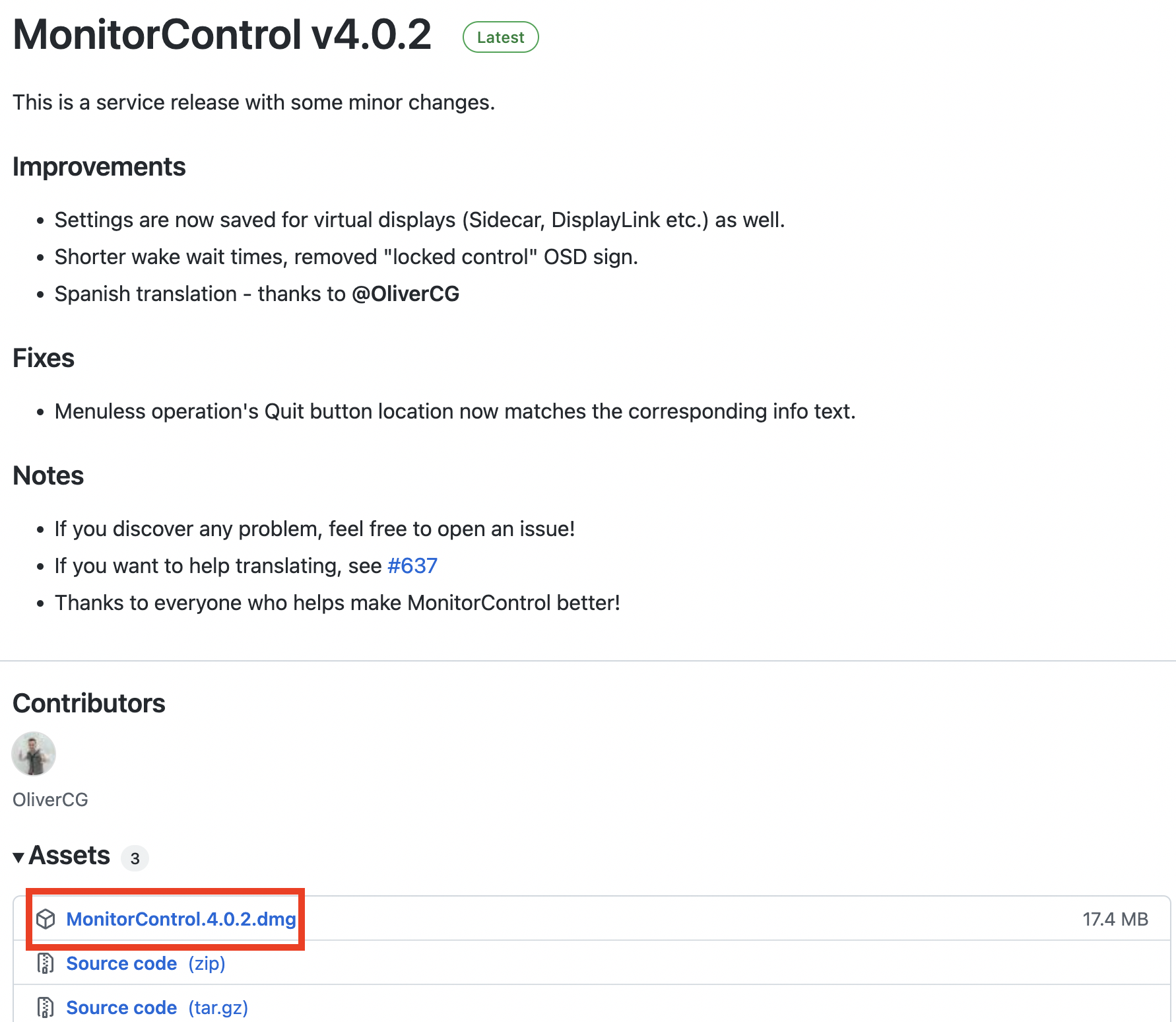 링크를 들어가서 가장 최신버전(2022년 4월 19일 기준 4.0.2 버전)을 받아줍니다. 애플 실리콘인 M1 이상의 칩을 탑재한 맥북도 업데이트되어 사용 가능합니다. 아, 모니터 컨트롤은 물론 무료입니다.