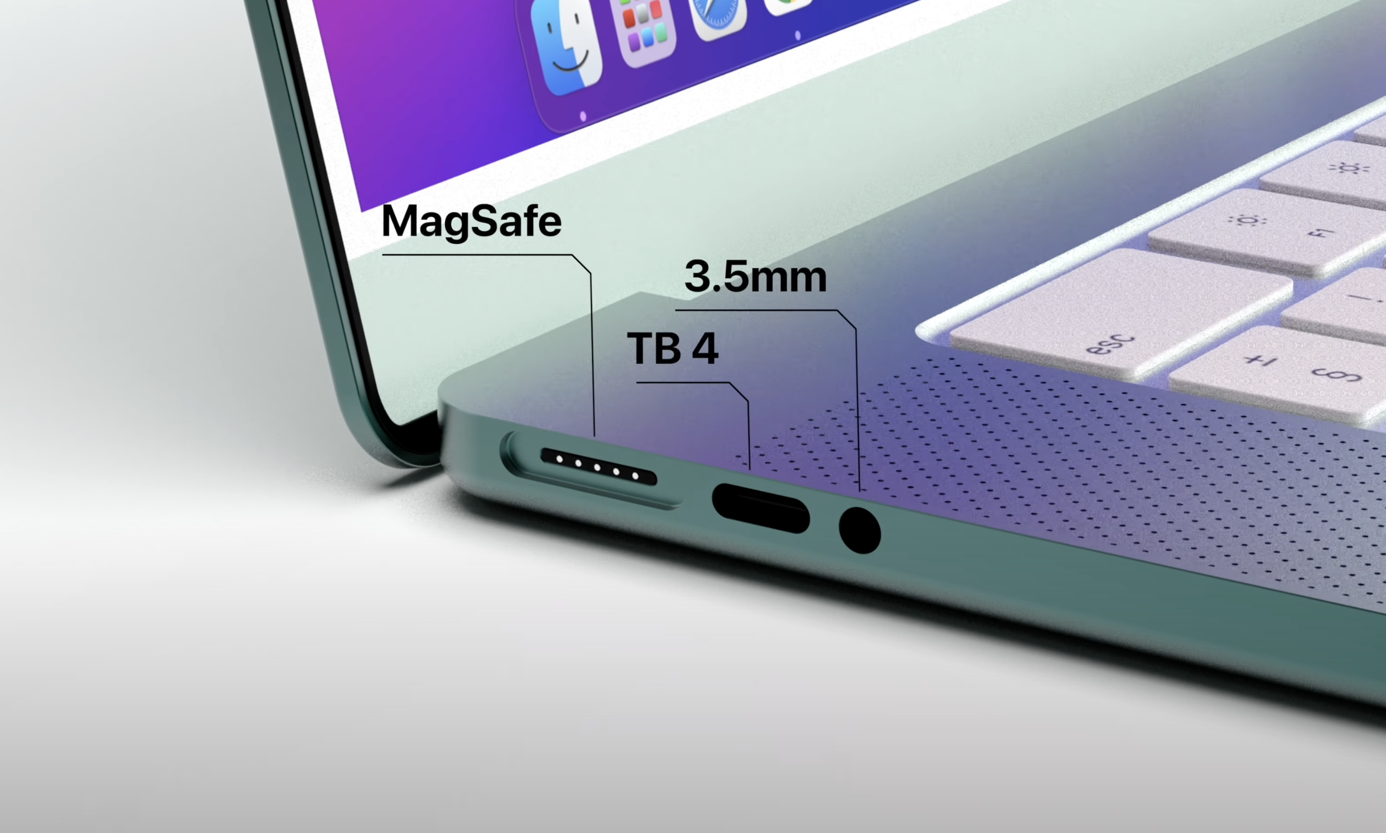 맥 세이프 역시 탑재될 전망입니다. 맥 세이프 외 포트로는 좌측에 썬더볼트 4 포트와 3.5mm 이어폰 단자, 우측에 추가 썬더볼트 4 단자가 탑재될 전망입니다.