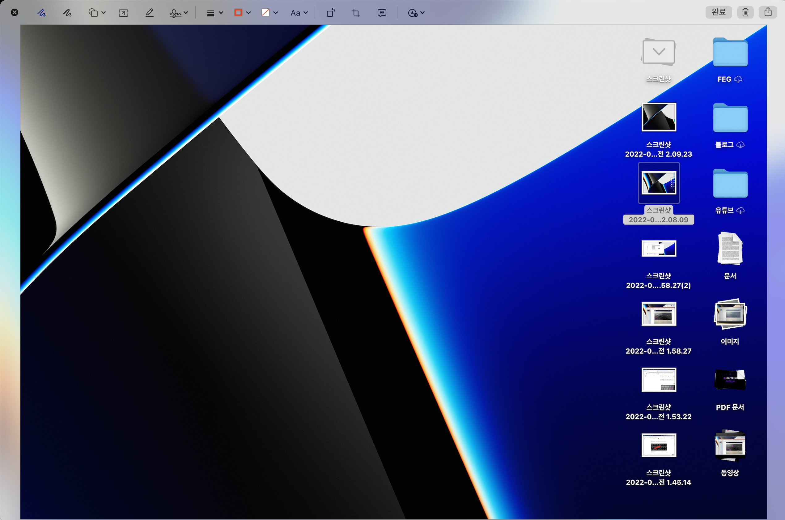 맥은 스크린샷을 찍으면 위 사진과 같이 화면 우측 하단에 잠시 스크린샷이 머물게 됩니다. 편집을 원하거나 스크린샷을 잘못 찍은 경우 우측 하단에 뜬 스크린샷을 눌러주면,