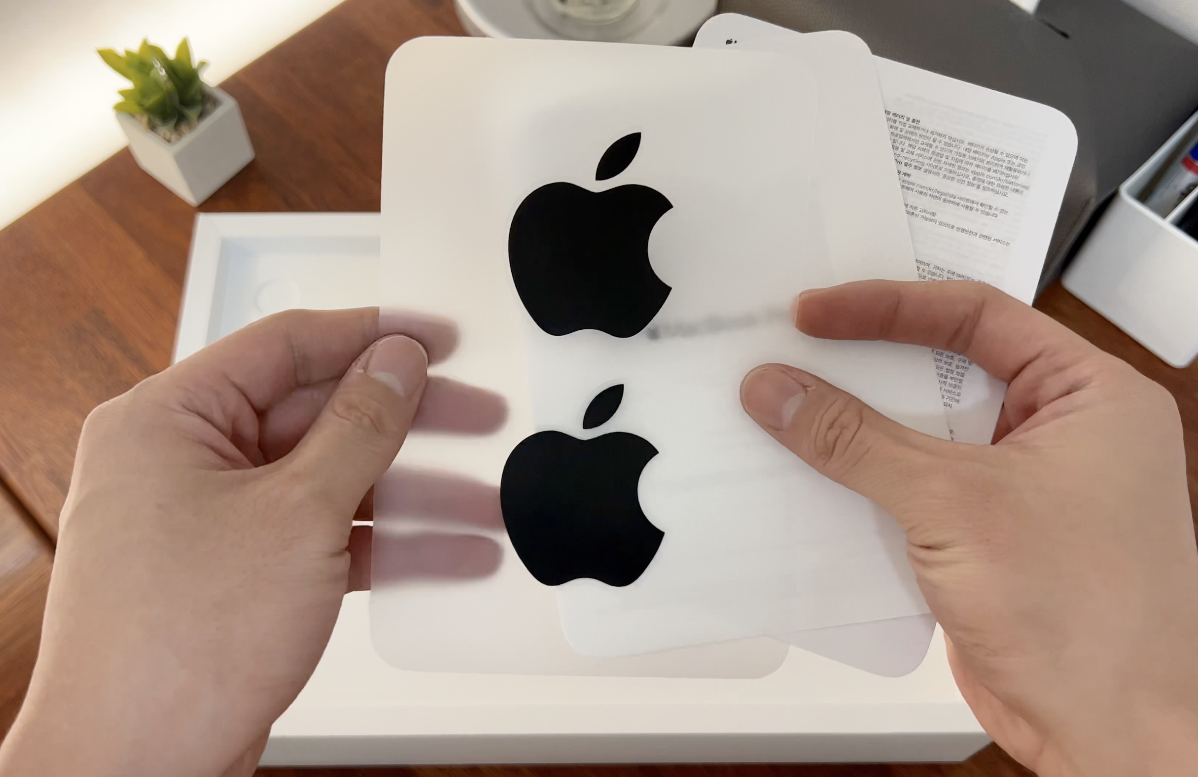 애플 스티커는 오랜만에 검정색 스티커가 들어있습니다. 아이맥 프로 이후 검은색 스티커가 동봉된 제품은 처음입니다.