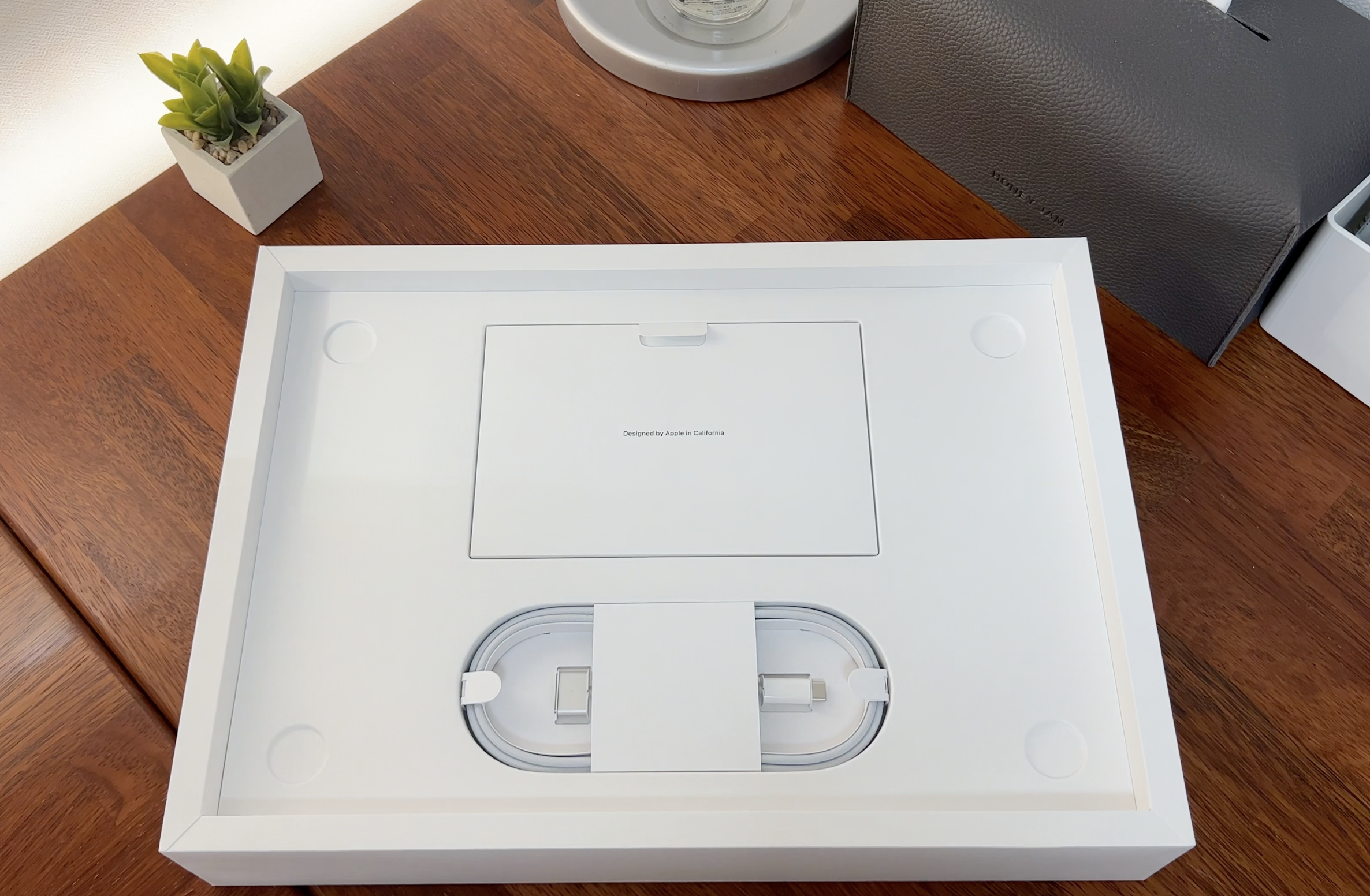 본품을 들어내자 간단 설명서 및 애플 스티커가 들어있는 패키지와 새로 추가된 맥 세이프 충전기가 눈에 들어옵니다.