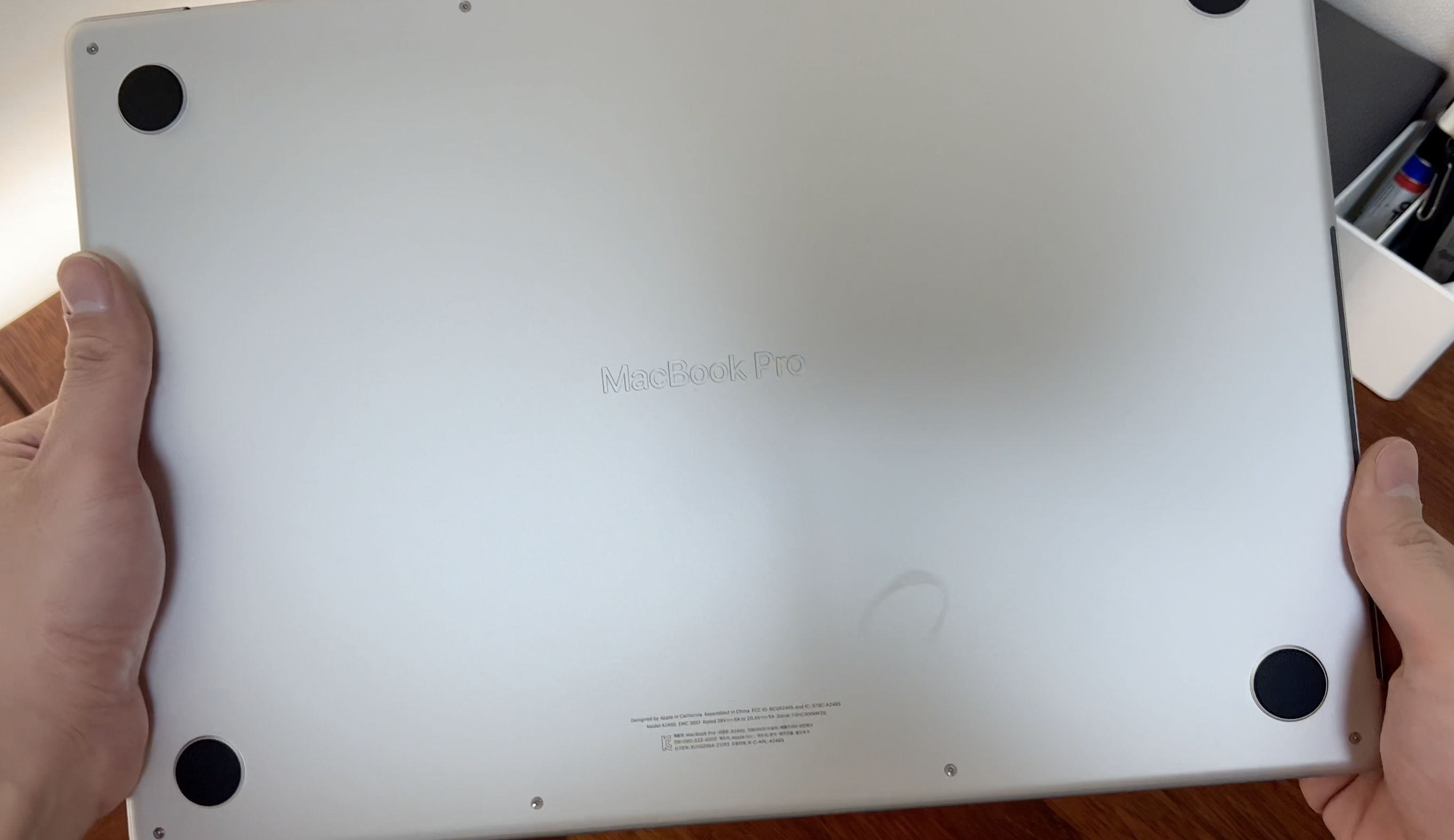 뒷면엔 Macbook Pro 글자가 음각으로 새겨져 있습니다.