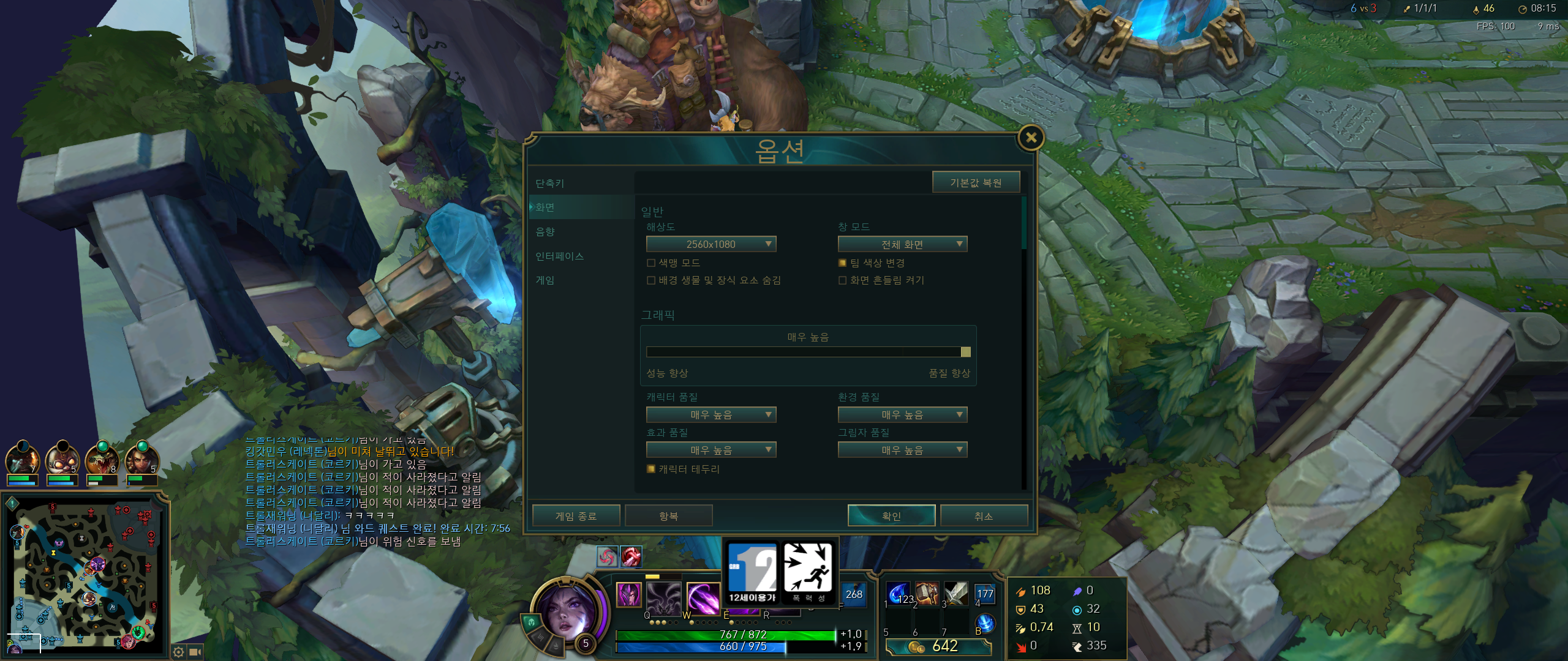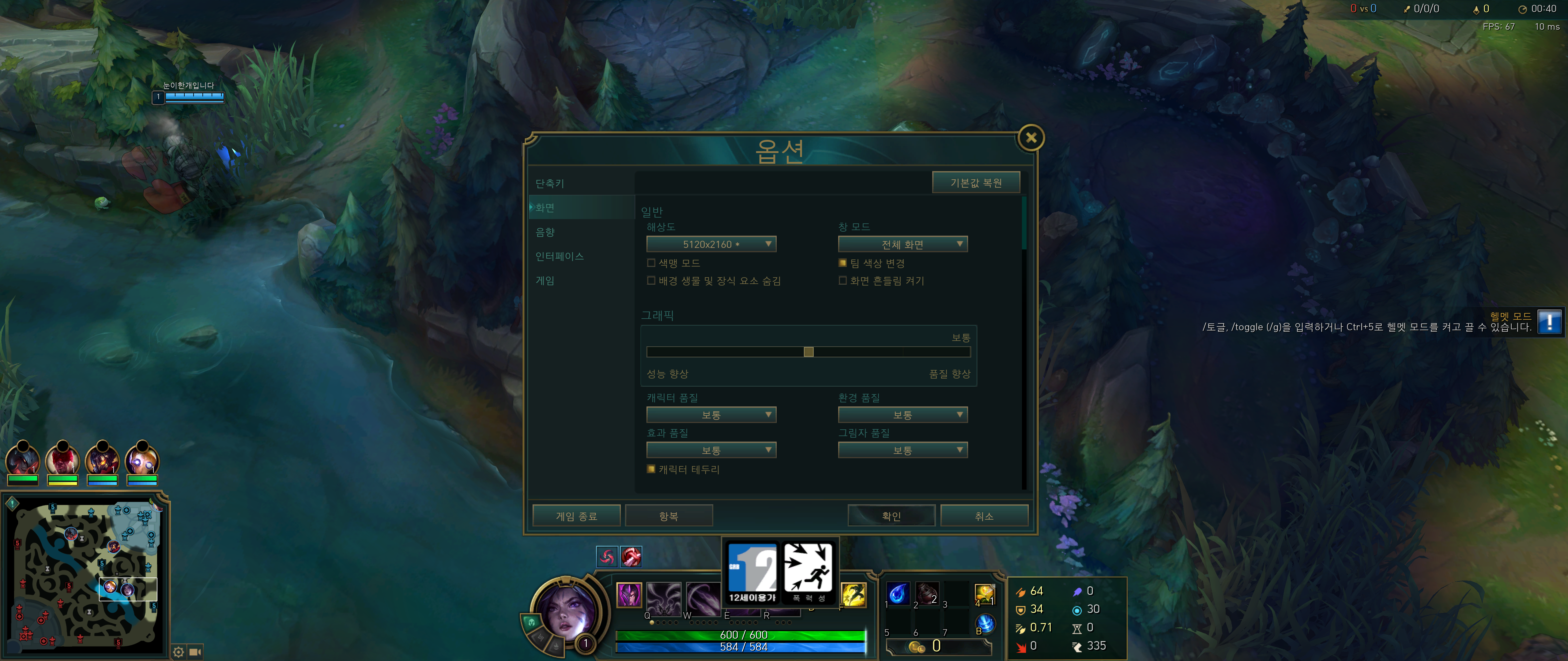 이제 플레이 가능한 최고 옵션을 찾았으니 더 높은 옵션을 사용하면 어떻게 되는지 확인해 봅시다. 두 번째 솔로 랭크 게임을 플레이하며 측정해보았습니다.