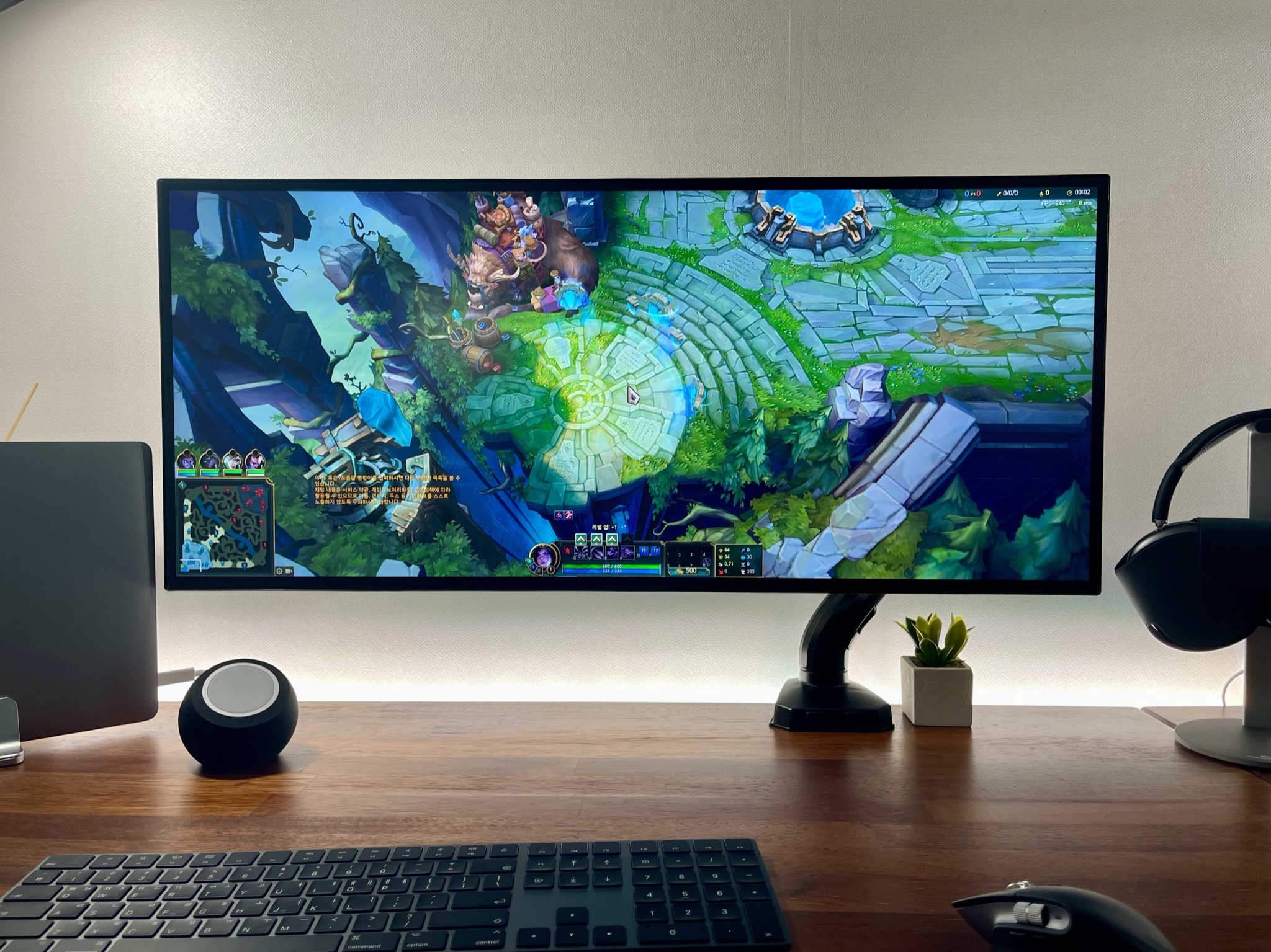 맥북의 키보드의 경우 게임 내에서 자주 쓰이는 컨트롤 키 좌측에 fn키가 있기 때문에 맥북 자체만으로 플레이하기에는 불편합니다. 그래서 별도의 키보드를 사용하였습니다. 아울러 정상적인 플레이를 위해 썬더볼트 케이블을 통한 외장 모니터를 사용하였습니다. 게임 내 수치 측정은 실제 솔로 랭크 게임을 통해 진행하였습니다.